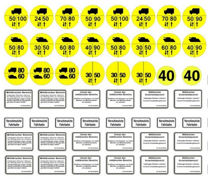 Gelbe Gewichtsklassenschilder für Modellbrücken, Strassen- und das Kasernengelände im Maßstab 1:87