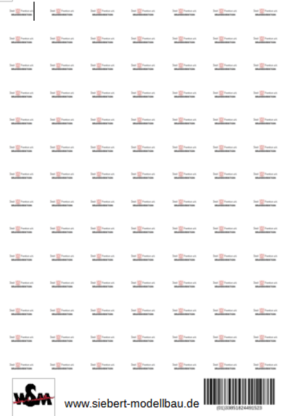 Auf dem Bogen befinden sich vier maßstäbliche Beschriftungen für die Modelle von Herpa oder auch von Wiking