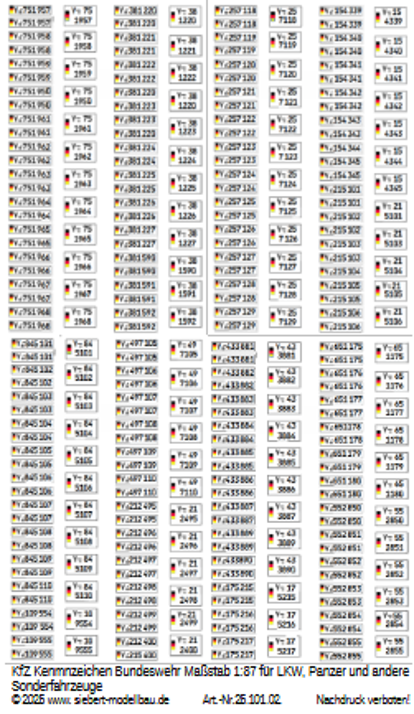 KfZ Kennzeichen der Bundeswehr im Maßstab 1:87. Gedruckt auf speziellem glänzendem Selbstklebepapier. Ein Bogen ist ausreichend für weit über 50 verschiedene Modelle.