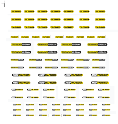 Beschriftungssatz mit Palfinger Logo in verschiedenen Ausführrungen und Schriftzüge für die Ladekranmodelle von Herpa und Kibri