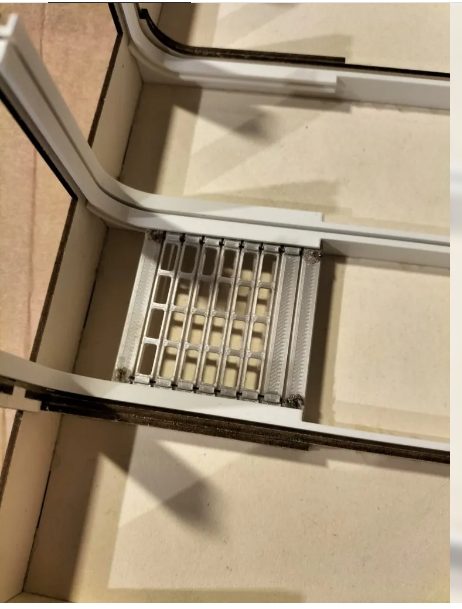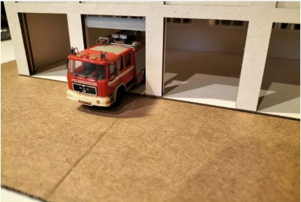 Die Halle ist im H0 Masstab 2,7 mm breit, 35,0 mm lang und 5,1,5 cm hoch und wird im Lasercut hergestellt.