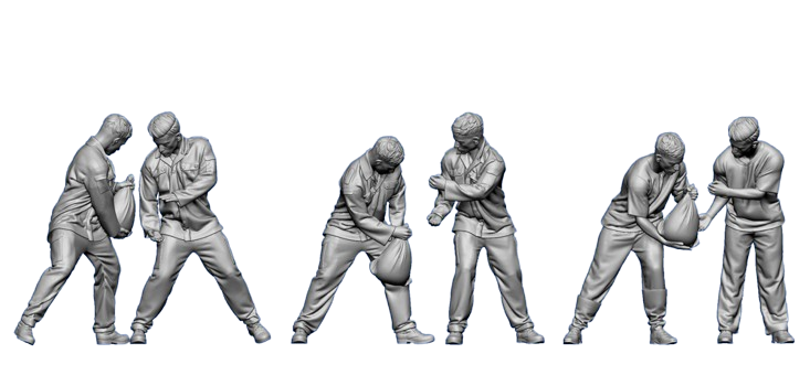 6 Soldaten der Bundeswehr bilden eine Kette zum verlegen von Sandsäcken während des Oderhochwassers, 3D Druck, bemalen sie die Figuren im Tarnfleck Schema, erst dann sind sie vorbildgetreu!