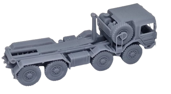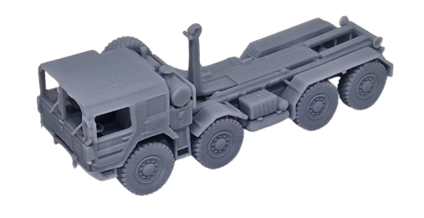 Dieser Bausatz besteht komplett aus perfekten, 3D gedruckten Bauteilen. Es sind im Bausatz enthalten: die Kabine mit tiefgezogener Verglasung, Inneneinrichtung, Fahrgestell, Radsatz 8x, Wechsellademimik von Meiller. Im Bausatz ist eine Beschriftung (Naßschiebedecal) enthalten, die das dekorieren des Modells nach dem Vorbild des Fahrzeuges der Duisburger Feuerwehr ermöglicht.
