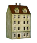 Dreistöckiges großes Stadthaus für die Modellbahnanlage und dem Diorama. Material Keramik und Resin, Fenster Polystyrol