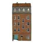 Dreistöckiges Stadthaus in Ziegelbauweise für die Modellbahnanlage und dem Diorama. Material Keramik und Resin, Fenster Polystyrol