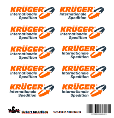 Beschriftungssatz Spedition Krüger, Decal für 5 LKW Modelle mit 20 ft. Aufbau/Container von Herpa oder Wiking