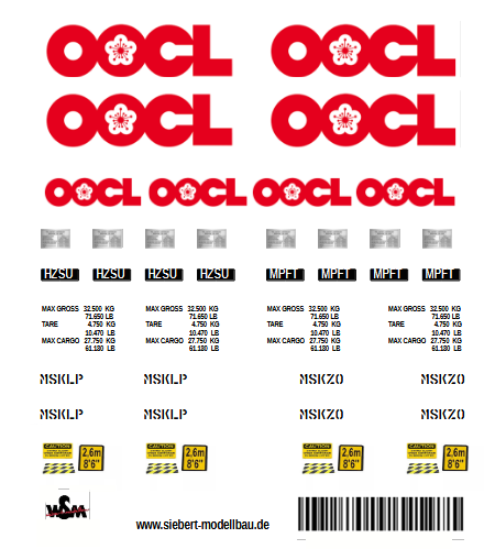 Beschriftungssatz OOCL für zwei 20 und 40ft Container