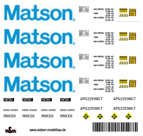 Decal "Matson" für zwei 20 ft Container