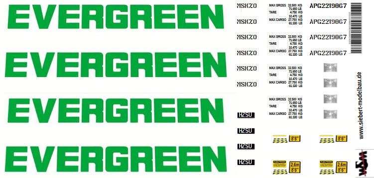 Beschriftungssatz für zwei "EVERGREEN" 20 ft Container