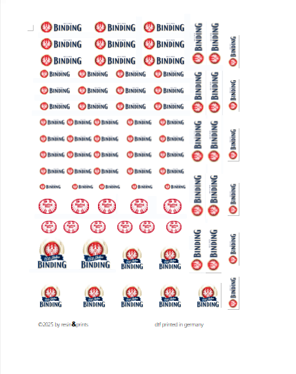 Binding-Bier Werbebeschriftungen für Fahrzeugmodelle und Dioramen und Anlagenbau