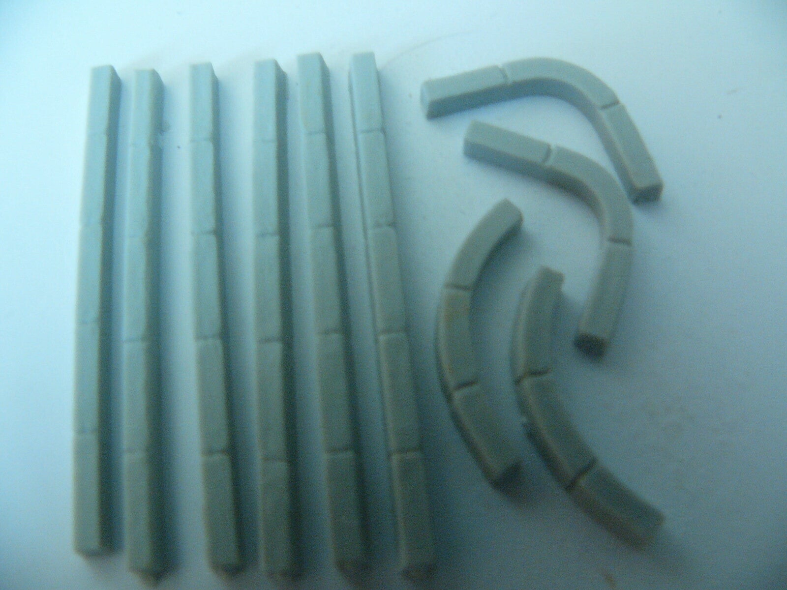 Bordsteine für den Bürgersteig. Resinguß Vollprofil, 12x lang 4x gebogen, grau/weiß