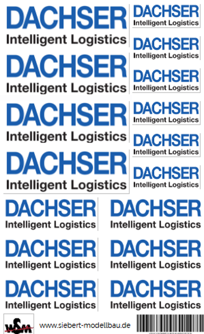 Beschriftungen "Dachser Intelligent Logistiks" für LKW Planenhängerzüge, Container und Transportermodelle von Herpa und Wiking