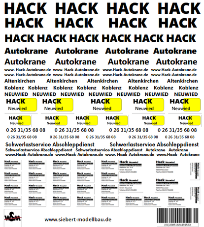 NEU: Beschriftungen für Kran -und LKW Modelle nach Vorbildern der Fa. Hack Krane. Türbeschriftungen für LKW und Kranmodelle von Herpa, Wiking und Kibri.